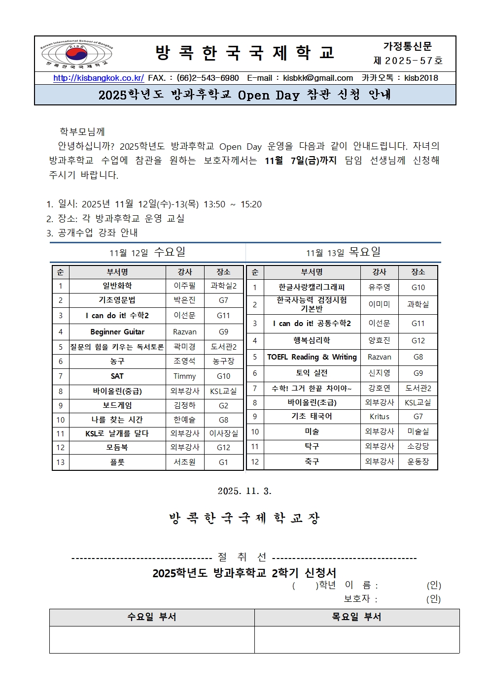 (제2025-57호) 2025학년도 중등 방과후학교 공개수업 안내